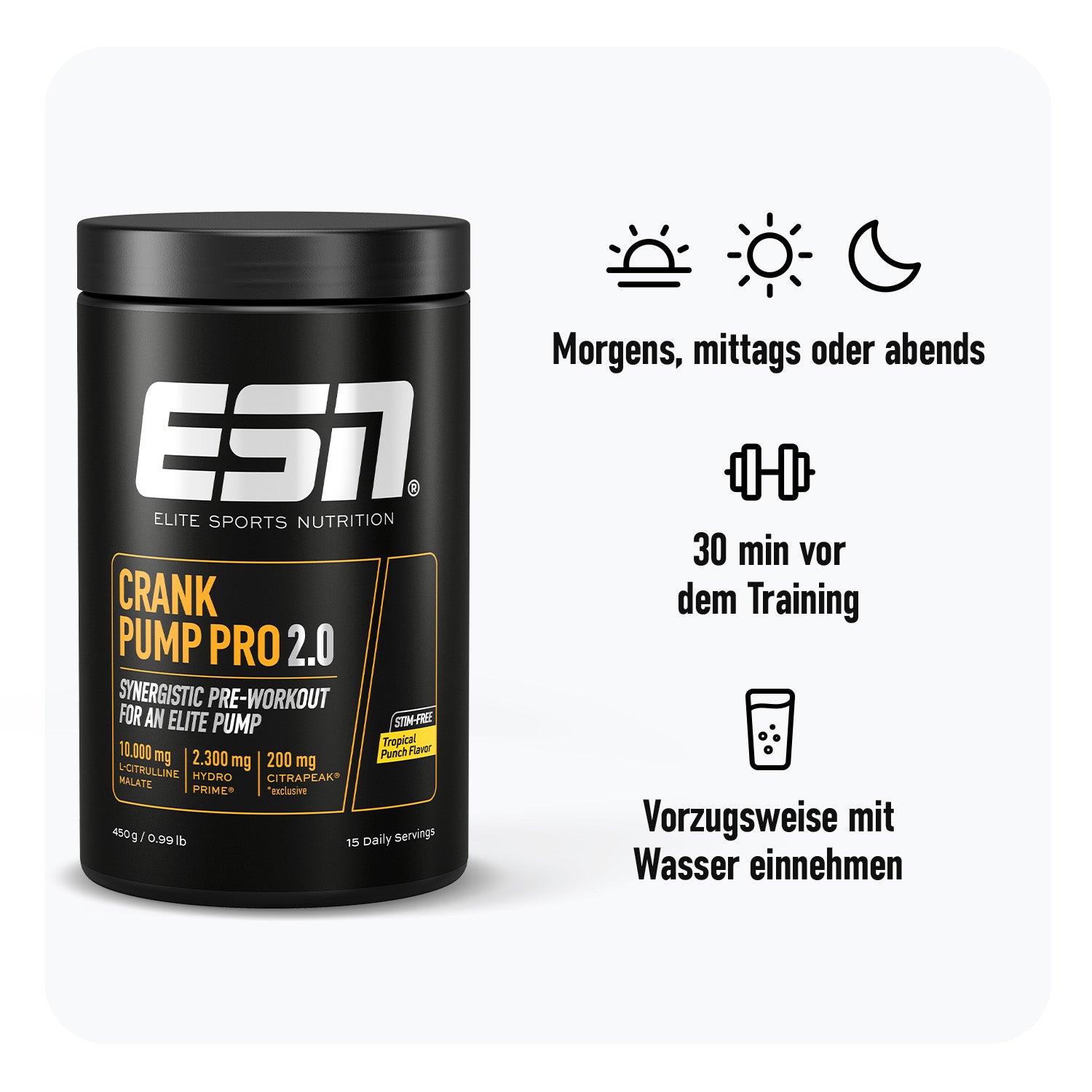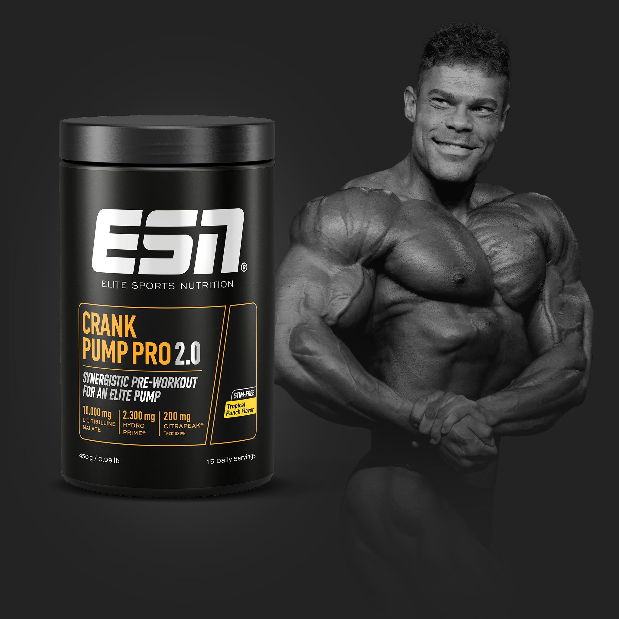 Setting the new standard of pump technology. Mit Crank Pump Pro 1.0 haben wir den Maßstab für Pump-Booster in Europa gesetzt – jetzt sprengen wir ihn: Crank Pump Pro 2.0 bringt als 1. Produkt Europas den innovativen Wirkstoff CitraPeak® in dein Pre-Workout. Zusammen mit weiteren Pump-Highlights liefert er ein Pump-Erlebnis auf Elite-Level – komplett stimulanzfrei. Das ist nicht einfach nur ein Upgrade – es ist eine komplette Neuformulierung für maximale Voluminisierung, die es so noch nicht gegeben hat.