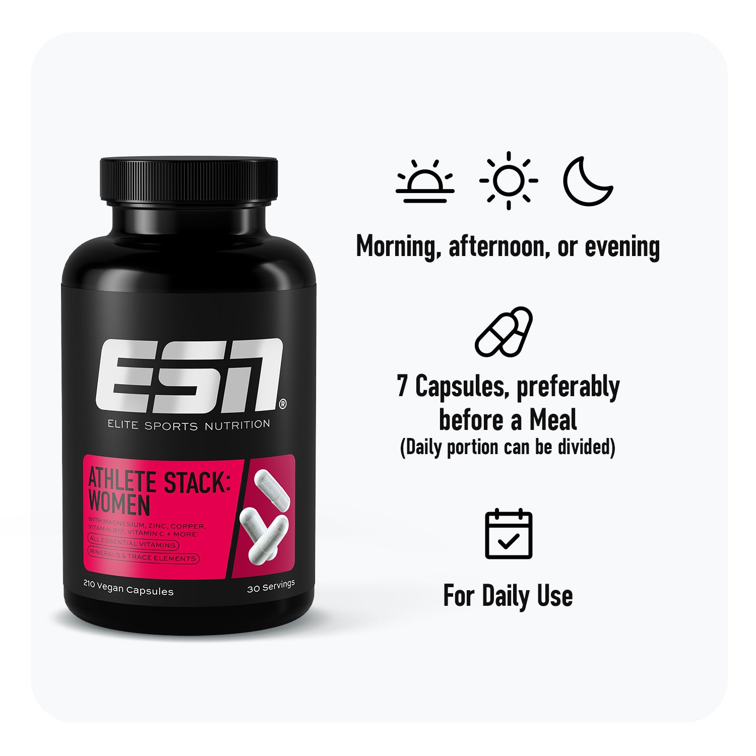 All-in-One-Support – mit unserem Athlete Stack. Diese effektive Nährstoffkombi versorgt dich ideal mit Vitaminen, Mineralien und Spurenelementen. Dabei haben wir die Dosierungen und Inhaltsstoffe an dein Aktivitätslevel und dein Geschlecht angepasst, um dir den besten Support zu bieten.
