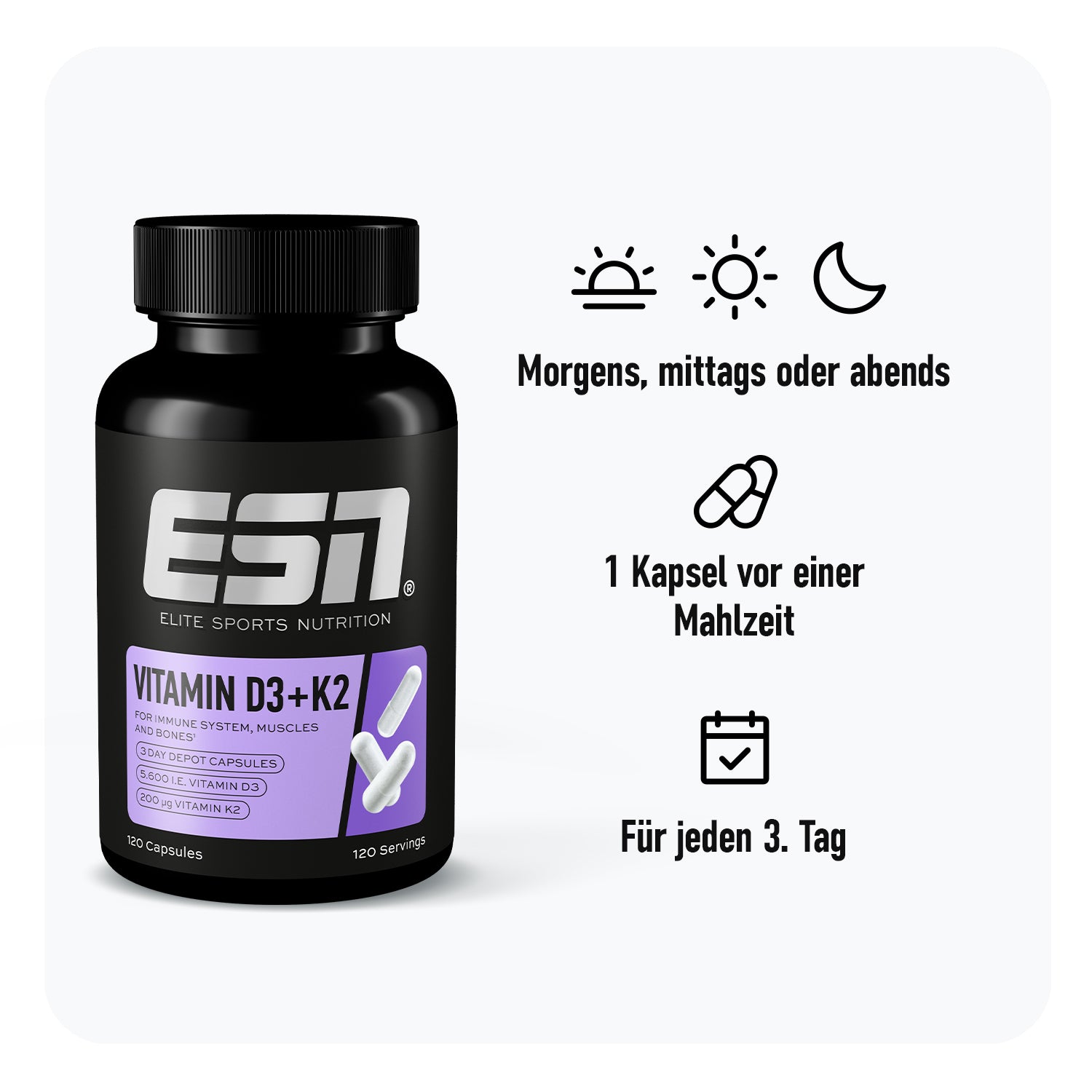 Keep in mind: Vitamin D3 und K2 spielen synergistische Rollen in der Knochengesundheit. Während Vitamin D3 die Calciumaufnahme aus dem Darm erhöht, sorgt Vitamin K2 dafür, dass Calcium effektiv in Knochen und Zähnen eingebaut und nicht in Arterien und Organen abgelagert wird.