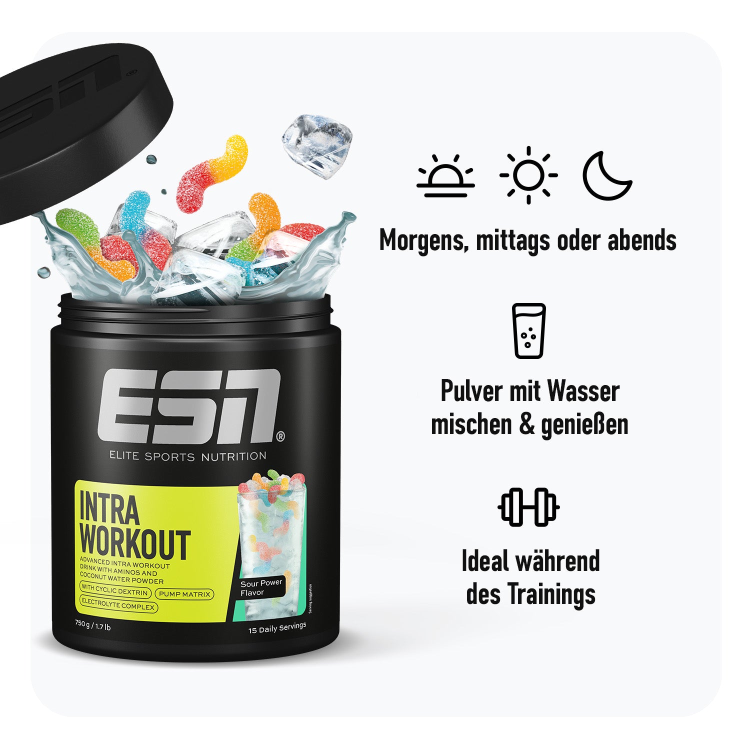 Intra support, intra power – mit unserem Intra Workout. Unser All-in-One-Drink liefert dir alles, was du während des Trainings für maximale Performance brauchst: hochwertige Carbs, wertvolle Aminosäuren und wichtige Elektrolyte. Perfekt, um dich gleichzeitig schnell und konstant mit Energie zu versorgen, deine Muskeln zu supporten und deine Hydration zu unterstützen – ohne Mischen von Produkten, effektiv und einfach versorgt mit nur einem Pulver.
