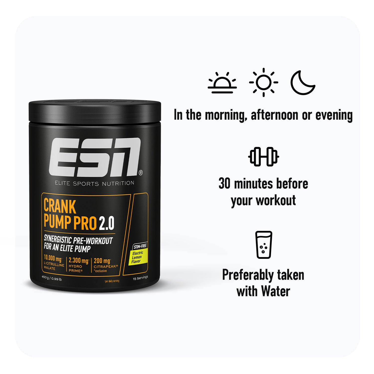 The new standard in pump technology: Crank Pump Pro 2.0 breaks the benchmark we set with 1.0. It’s the first pre-workout in Europe with CitraPeak®, paired with other innovative ingredients for an elite-level muscle pump — completely stimulant-free. This isn’t just an upgrade; it’s a brand-new formulation that delivers a boost like nothing you’ve experienced before.