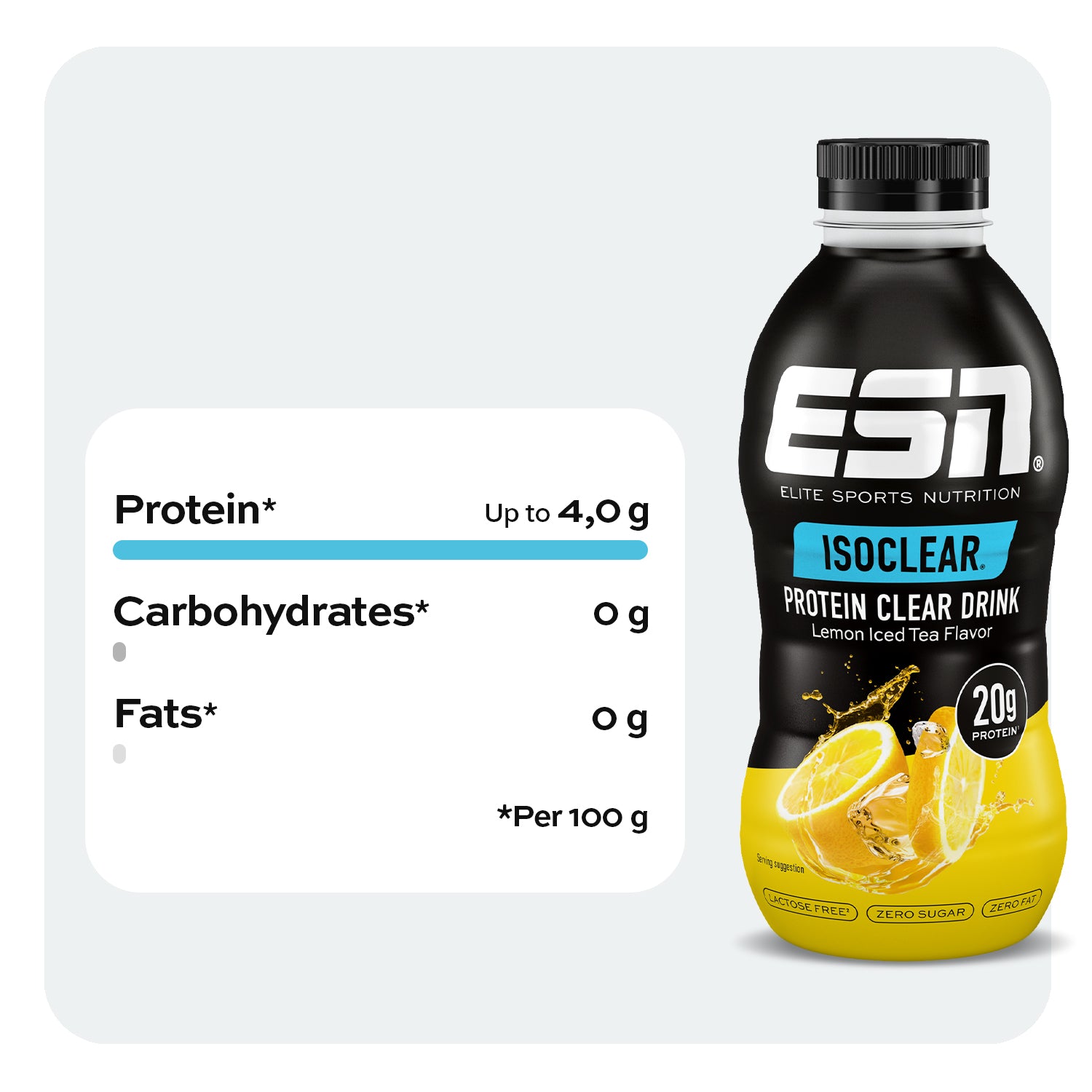 Clear protein power - ready to drink! Our Isoclear® Protein Clear Drink is ready to drink and therefore ideal for an uncomplicated and quick protein supply. Without weighing. Without mixing.