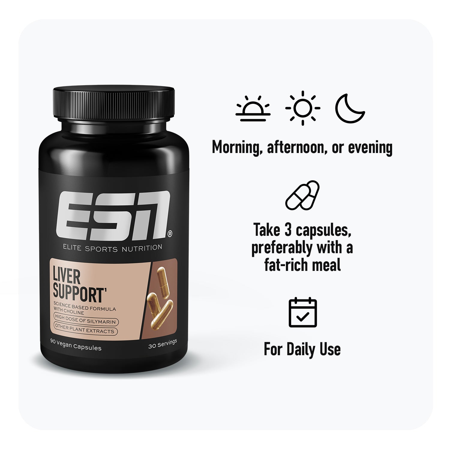 Capsule Shell (Hydroxypropyl Methyl Cellulose), N-Acetyl-L-Cysteine, Black Cumin Seed Extract (4:1), Choline Bitartrate, Schisandra Fruit Extract, Milk Thistle Extract, Turmeric Root Extract (4:1), Coenzyme Q10, Bulking Agent (Microcrystalline Cellulose), Artichoke Leaf Extract (5:1), Anti-Caking Agents (Magnesium Salts of Fatty Acids, Silicon Dioxide), Broccoli Flower Extract (13:1), Sodium MolybdateKey Facts – Liver Support