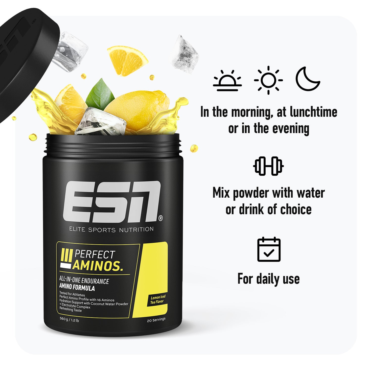 Achieve your best performance yet – with our Perfect Aminos. This unique amino formula, with an optimised amino acid profile, electrolyte complex, vitamin B6, and more, provides you with the allround support you need for optimal performance, recovery, and hydration.1 Specifically designed for endurance athletes!